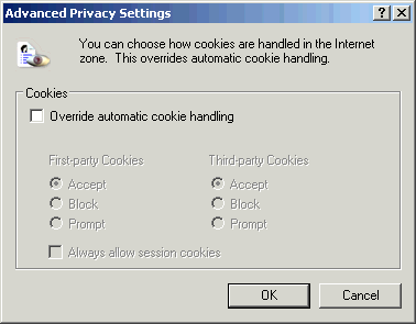 If these Cookie settings won't work for you, then you need to check the Privacy of Internet options to override the setting and accept the cookie handling.