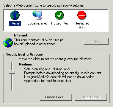 Therefore, you computer must accept cookie handling under security settings. If you use Microsoft Internet Explorer, then you can set the security level to Medium.
